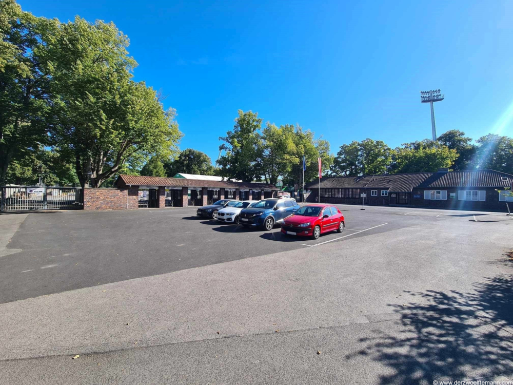 Der Parkplatz Willi-Kaidel-Straße befindet sich hinter dem Stadion und ist als Gästeparkplatz deklariert.